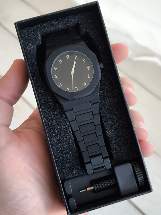 ساعت مردانه شیک با طراحی مشکی مات و اعداد عربی.