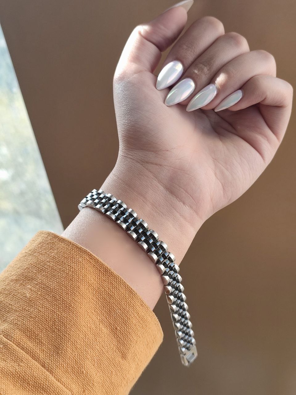 دستبند استیل شیک با طراحی مدرن و رنگهای متنوع.