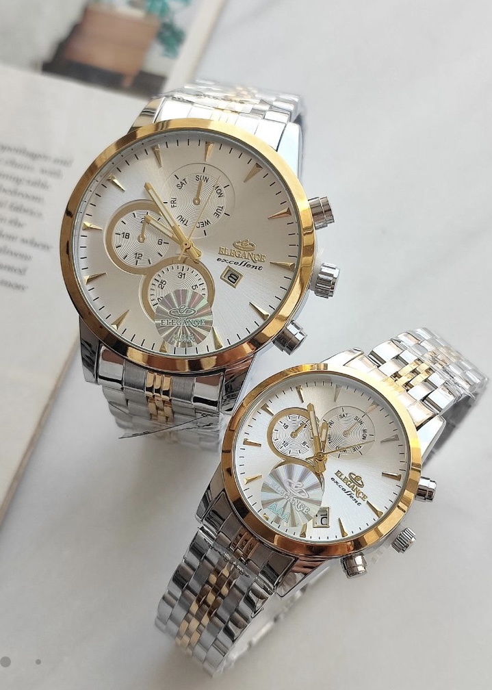 ساعت فلزی شیک با طراحی مدرن و بند مقاوم، مناسب استایل روزمره و رسمی.موتور ژاپن رنگ ثابت طرح سه موتوره دوقفله مخفی