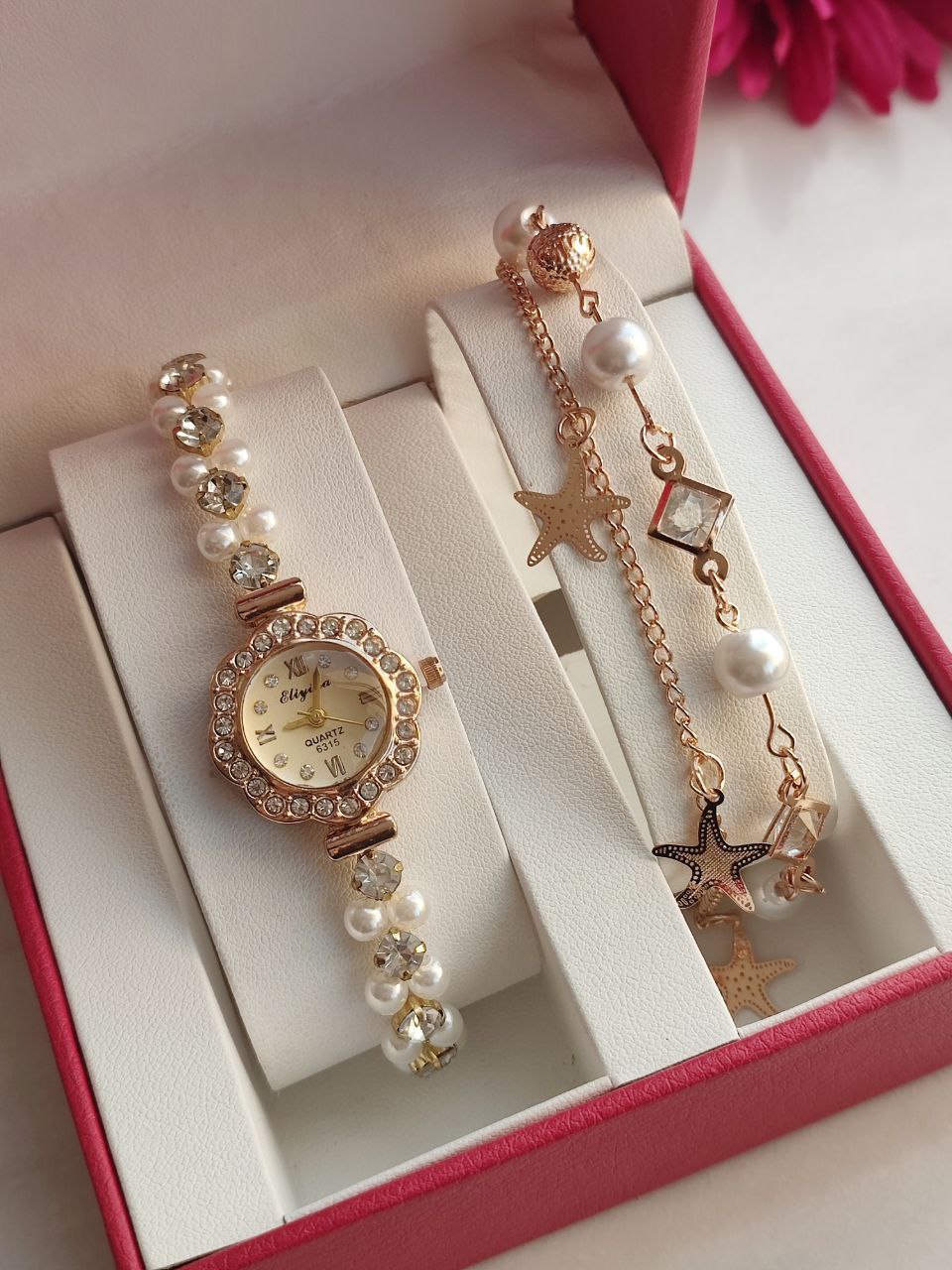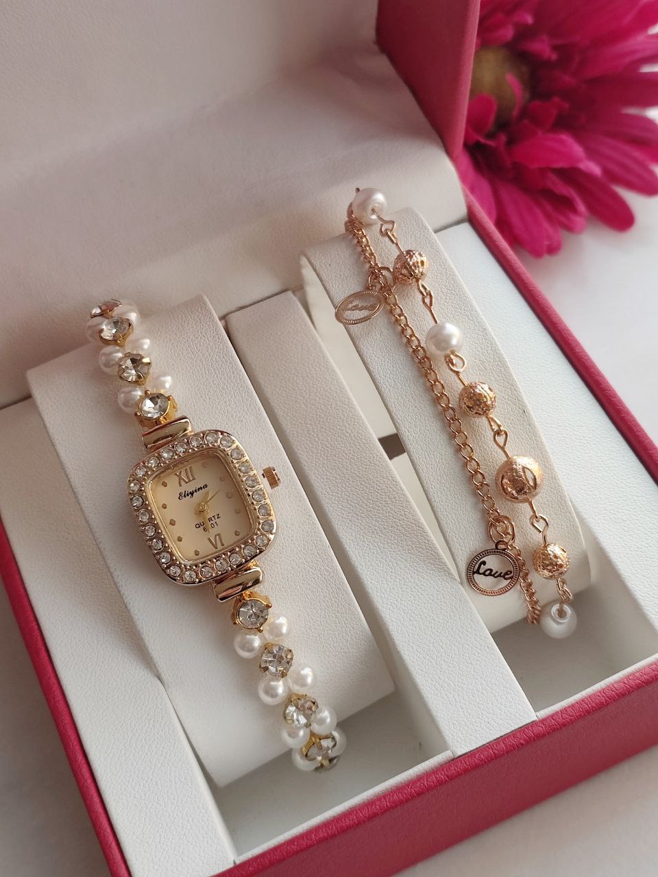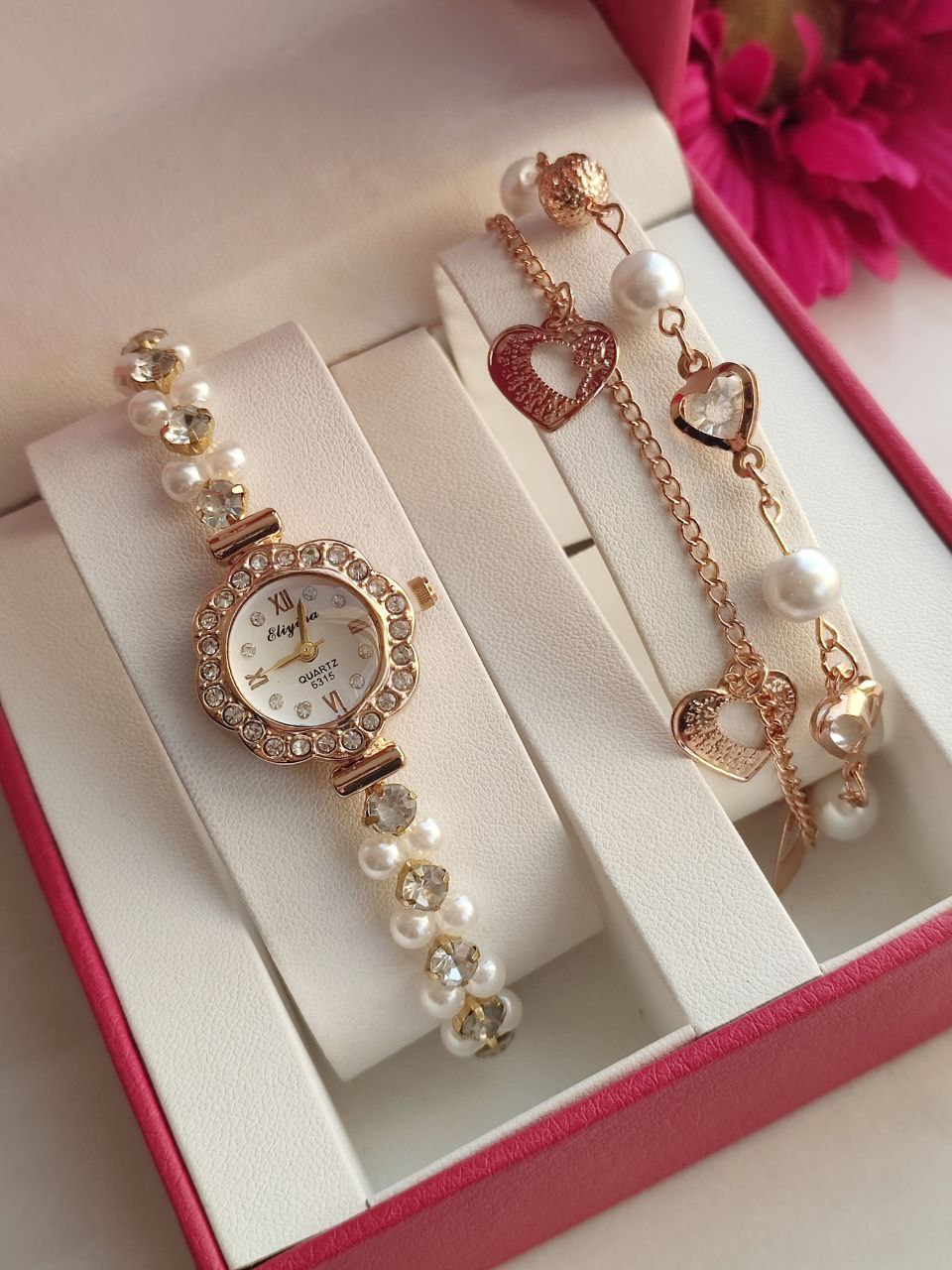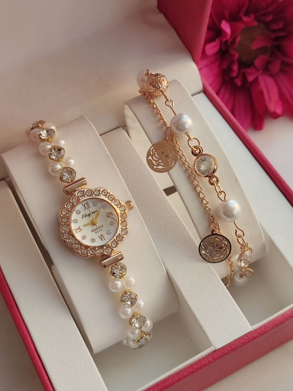 ساعت بند مرواریدی به همراه دستبند 3804108199