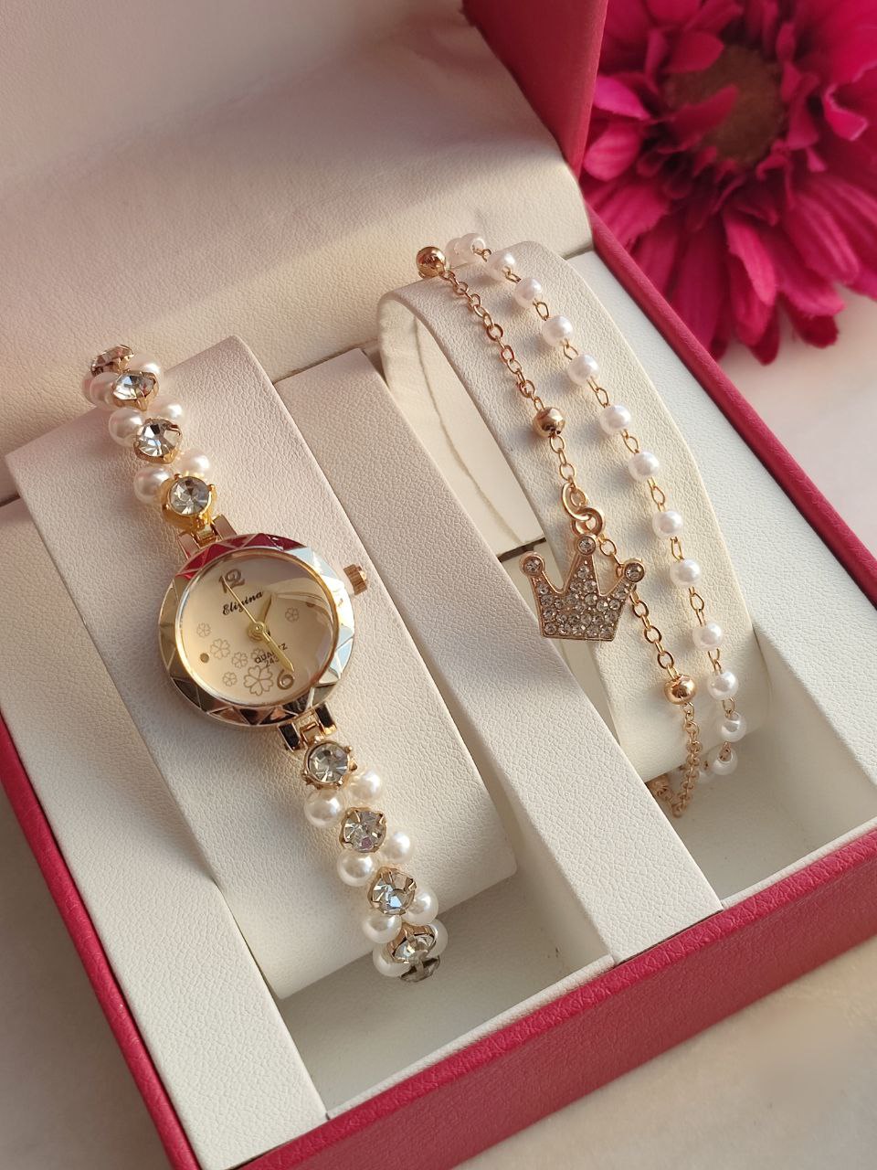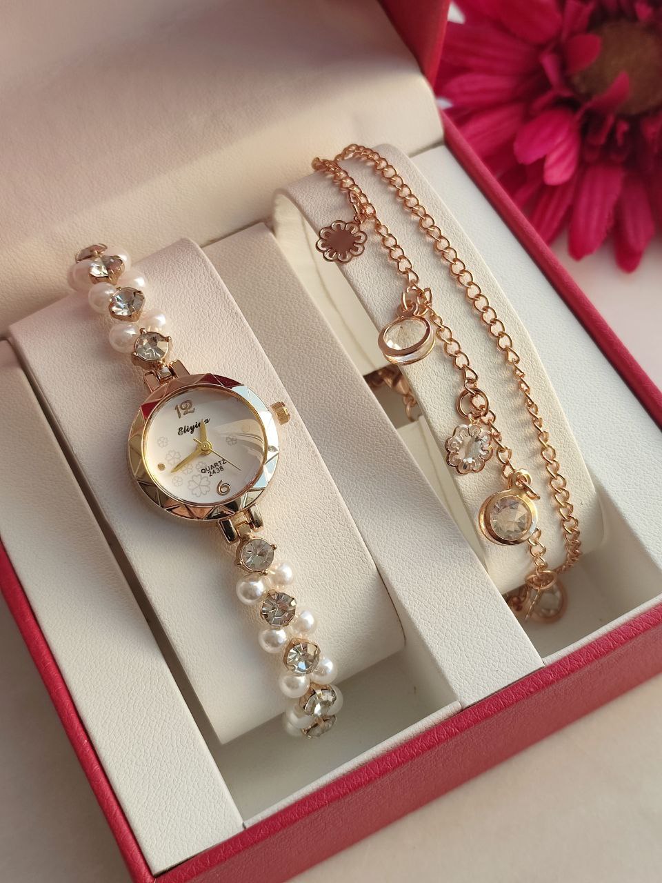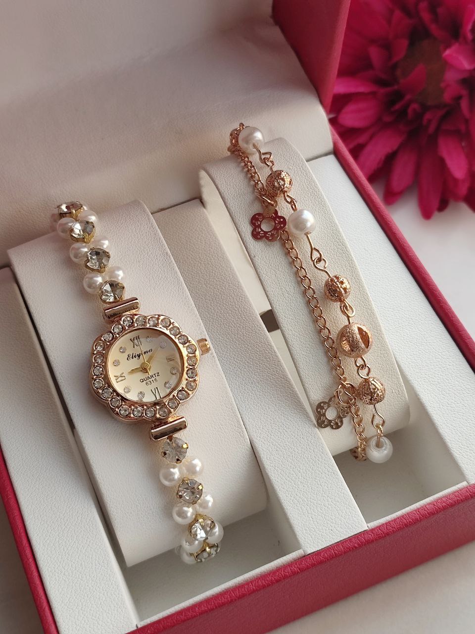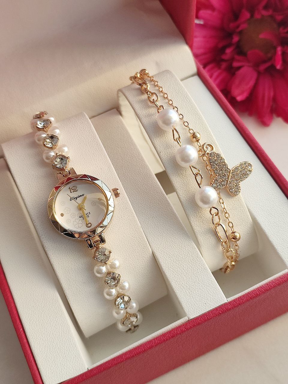 ساعت بند مرواریدی به همراه دستبند 3804108199