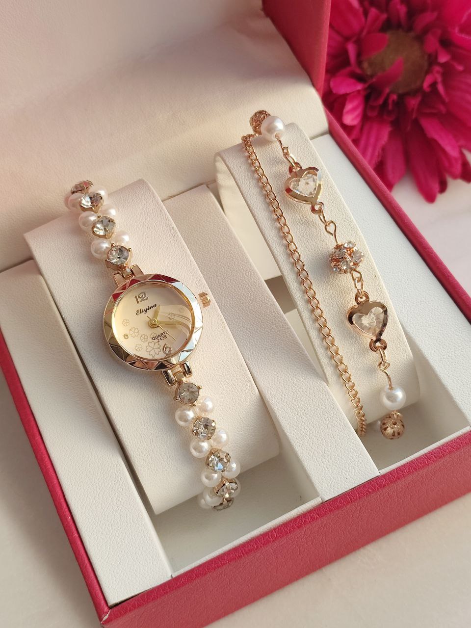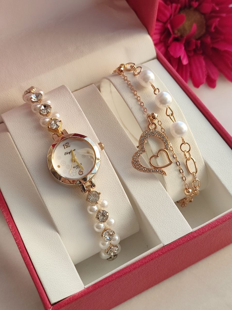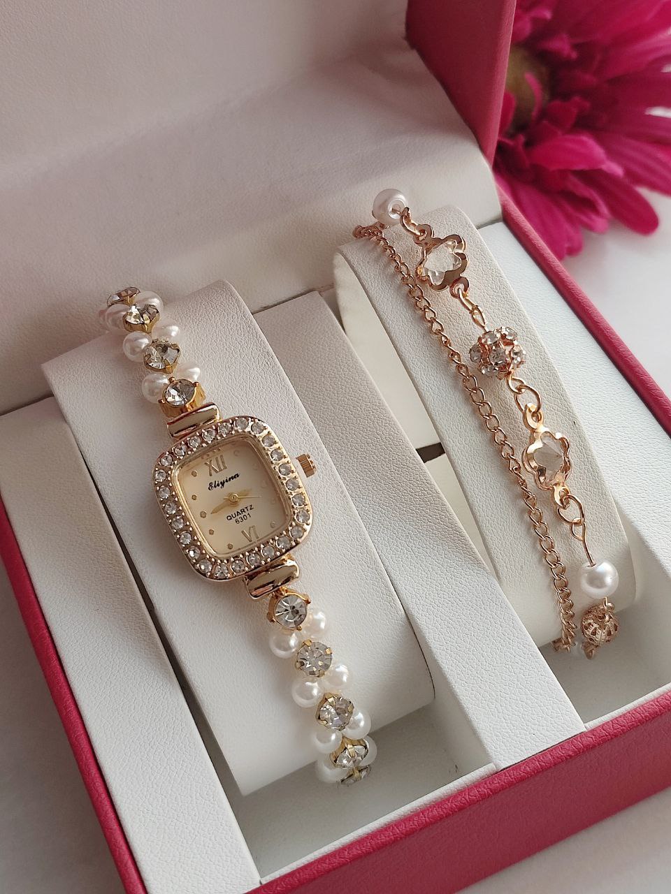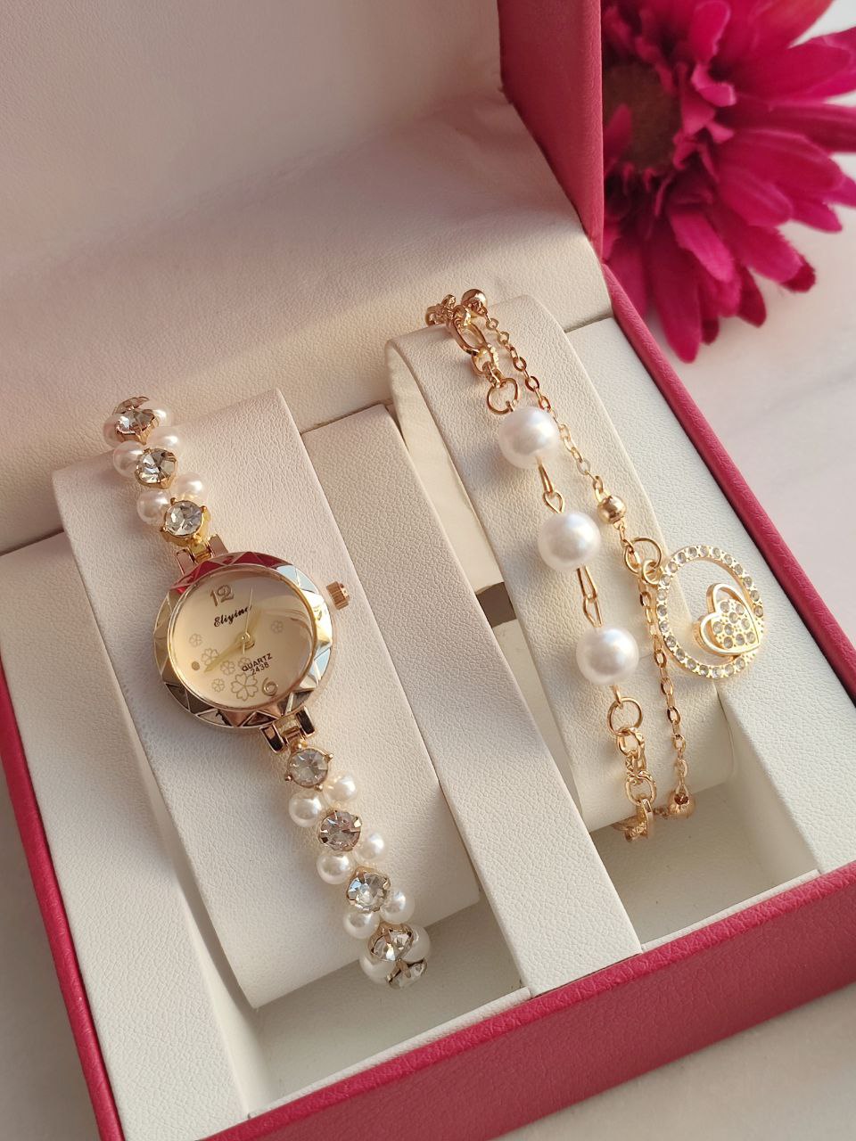 ساعت بند مرواریدی به همراه دستبند 3804108199